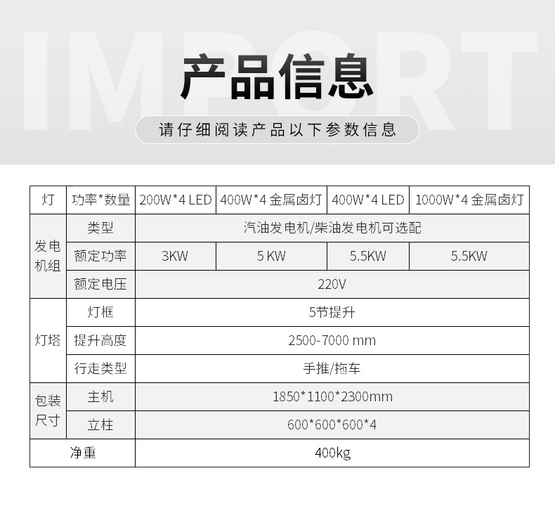 用于體育場館、機場、碼頭等大型公共場所,公路、鐵路、電力等緊急搶險現(xiàn)場,露天采礦現(xiàn)場,以及防洪防汛、搶險救災現(xiàn)場等其他需要緊急備用光源、電源的場合。