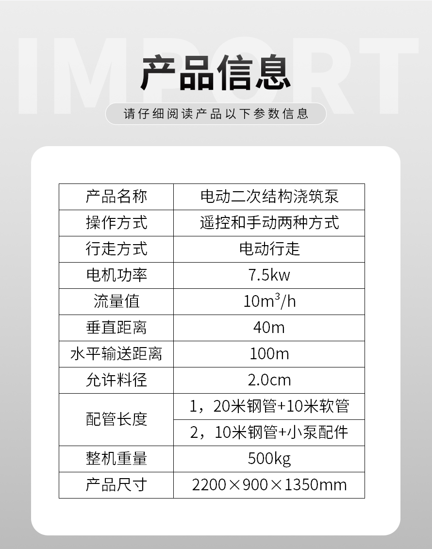 7.5kw微型斜式二次構(gòu)造澆筑泵