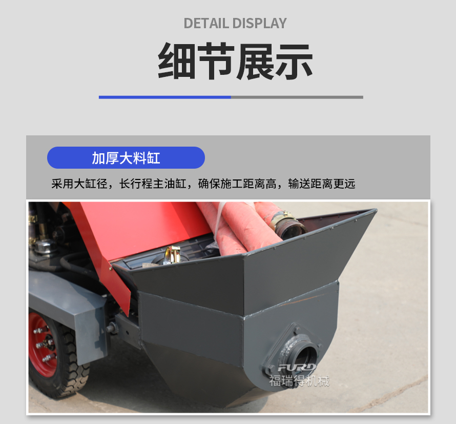 福瑞得二次結(jié)構(gòu)澆筑泵適用于商品房、農(nóng)村建房,打二次構(gòu)造柱,圈梁等,是您澆筑的好設(shè)備。電機(jī)功率小,體積小,重量輕,料斗可升降,真正能提高您的施工效率,是人工澆筑的幾十倍。