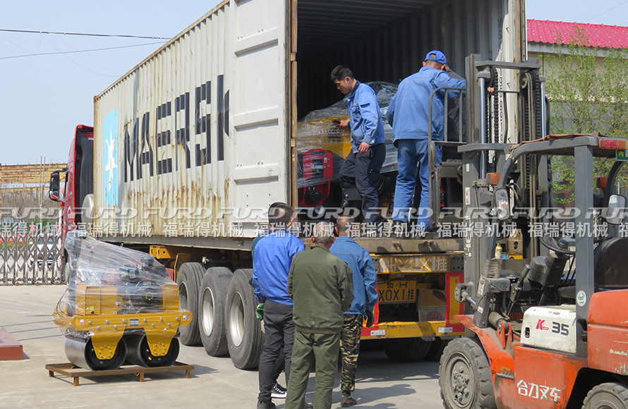 4月9日,福瑞得機(jī)械13臺(tái)手扶雙輪壓路機(jī),1臺(tái)8噸重型壓路機(jī)和2臺(tái)座駕雙鋼輪壓路機(jī)分兩柜出口印度,這是福瑞得機(jī)械2021年度第8次大批量裝柜出口壓路機(jī)。