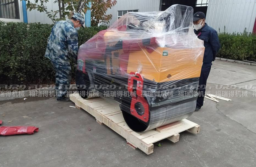 福瑞得1臺雙鋼輪壓路機打包發(fā)往菏澤