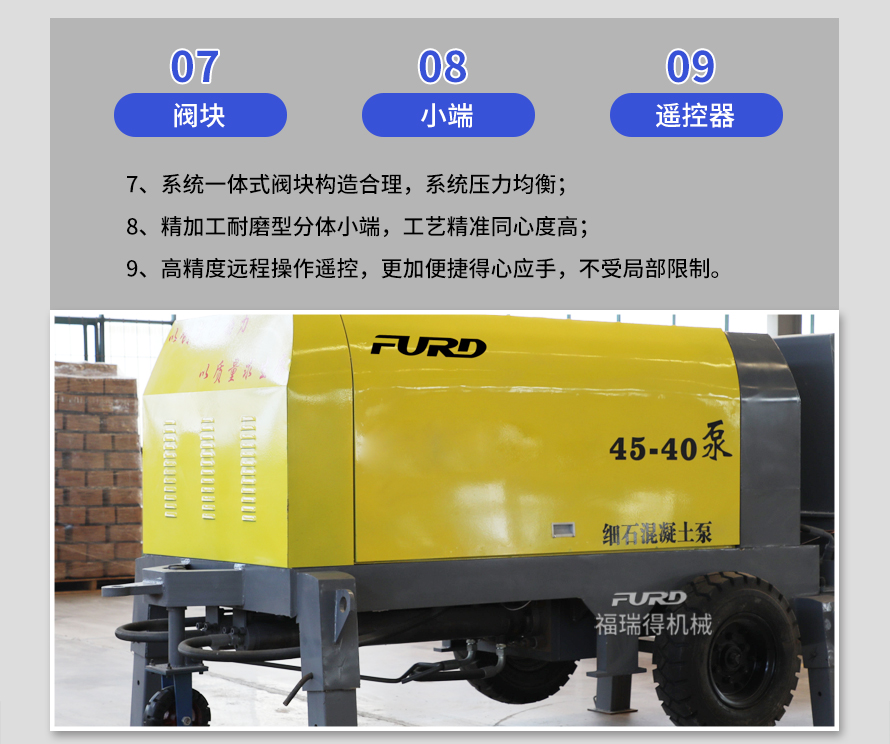 產(chǎn)品介紹: 1,大流量 采用加粗料缸,讓機(jī)械每一次循環(huán)出料多20% 2,效率高 移動便捷全部采用快接式管道卡,提高工作效率 3,便捷 本機(jī)可遠(yuǎn)程遙控,操作不受地點(diǎn)限制,更加人性化 產(chǎn)品用途: 坡道灌漿,水平地面,隧道澆筑,模