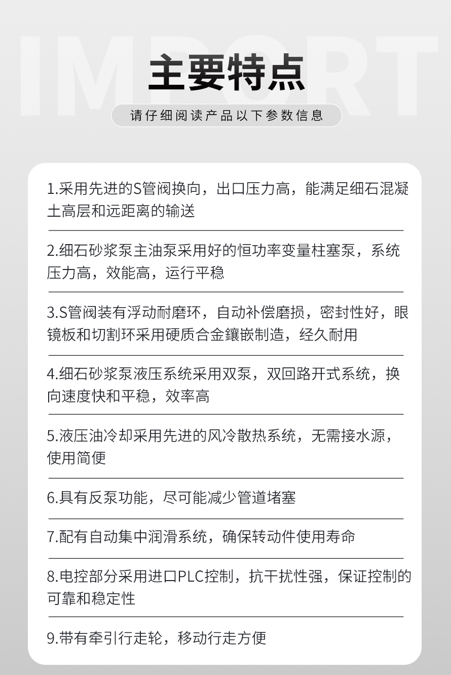 25型二次構(gòu)造柱專用輸送泵是一種復(fù)合泵送要求的混凝土泵,通過水平或垂直安裝的管道,連續(xù)輸送到澆注現(xiàn)場(chǎng)的細(xì)石混凝土輸送設(shè)備。 廣泛應(yīng)用于二次構(gòu)造柱填充、地暖工程、屋面、高層建筑的墻、水庫(kù)、水電站、港口、碼頭、基礎(chǔ)處理 軟弱地基 加固注漿 隧