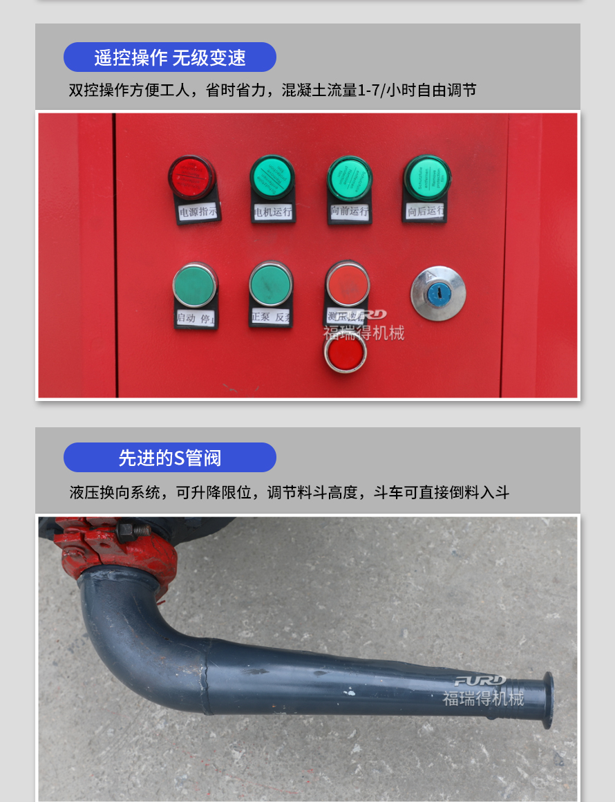 福瑞得二次結構澆筑泵適用于商品房、農村建房,打二次構造柱,圈梁等,是您澆筑的好設備。電機功率小,體積小,重量輕,料斗可升降,真正能提高您的施工效率,是人工澆筑的幾十倍。