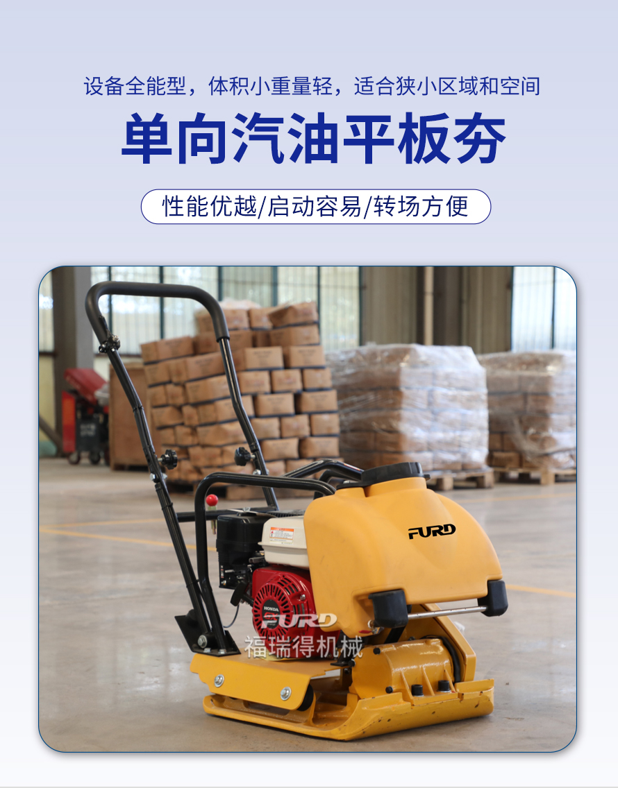 適用于路基邊緣、橋涵、管道、溝槽底部等狹長地帶的壓實。 本田汽油動力,名牌品質保證。