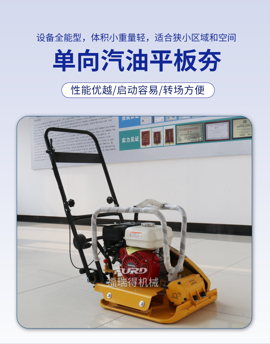 適用于路基邊緣、橋涵、管道、溝槽底部等狹長地帶的壓實。 本田汽油動力,名牌品質(zhì)保證。